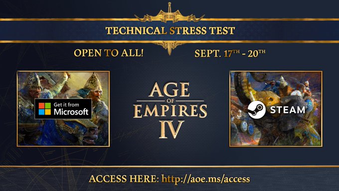 From Friday September 17 through Monday September 20 all PC players will have access to the Age of Empires 4 Technical Stress Test.